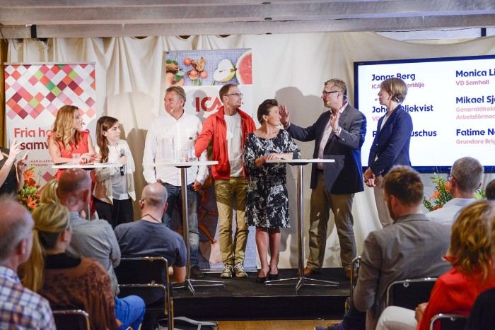 - Vi är jätteglada för det vi har åstadkommit med bland annat våra initiativ Vi kan mer och ICA 2020. Men vi har också mycket kvar att göra, säger Petra Albuschus som intog scenen tillsammans med ICA-handlare Jonas Berg, Arbetsförmedlingens generaldirektör Mikael Sjöberg, Monica Lingegård, Samhall, Johan Oljekvist, Fryshuset och Fatime Nedzipovska från Brightful.